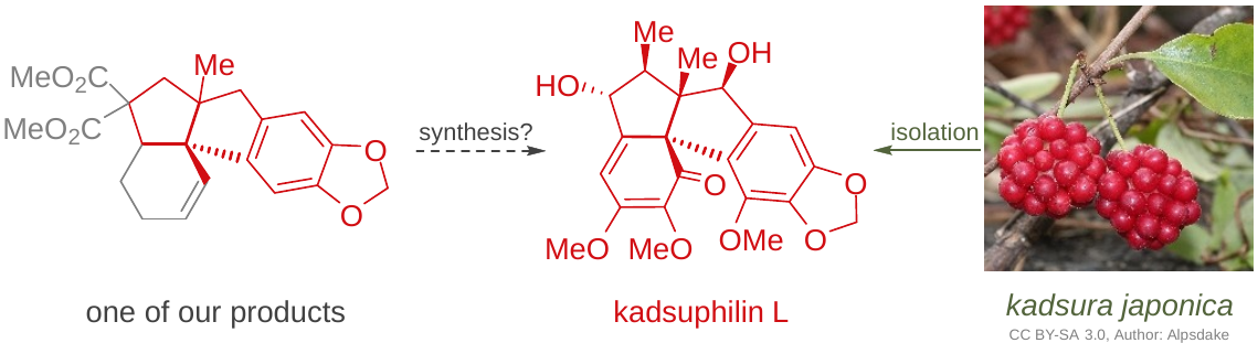 All-carbon quaternary centres occur widely in natural products, as well as pharmaceutically important compounds. Their enantioselective synthesis, however, still represents one of the greatest challenges in synthetic organic chemistry. This PhD project will continue in an ongoing research of the group dealing with the quaternary carbon centres. We previously developed a method for an enantioselective synthesis of compounds structurally resembling Amaryllidaceae alkaloids by using tandem cyclisation/Suzuki cross-coupling and subsequent halocarbocyclisation as the key reaction sequence. In this project, on the other hand, it is planned to employ palladium-catalysed oxidative coupling or Heck reaction to form such quaternary centres, using sligthly modified starting materials. By that means the synthesis of compounds resembling natural lignans kadsuphilins L and M should be achieved. Lignans of Schisandraceae family of climbing plants, where kadsuphilins belong, were found to posess various pharmacological activities, including antitumor, anti-HIV, antihepatitis, antineurodegenerative and antioxidative effects. Specifically, kadsuphilins L and M were isolated from Kadsura plants and their total synthesis has not been reported so far. Hence, it would be valuable to prepare these natural products and/or their derivatives and evaluate their biological properties.